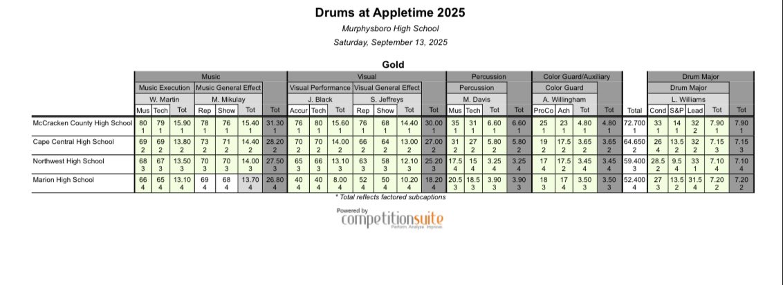 | Field 4A:72.700 McCracken County, KY (Music, Visual, Percussion, Color Guard, DM)